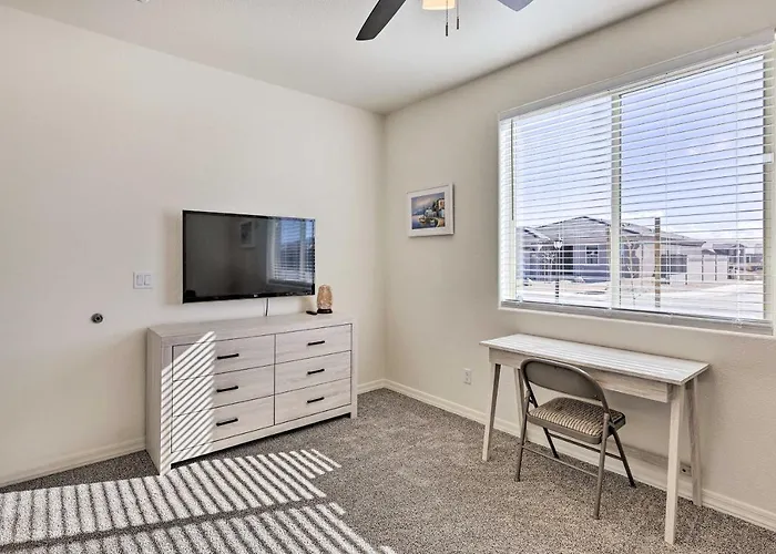 Modern Kingman Vacation Rental, 5 Mi To Dtwn! offers 2 bathrooms, which come with a tub, a separate toilet, and a shower.